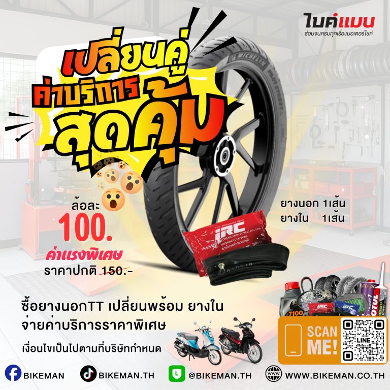 *ส่วนลดค่าแรงเฉพาะเมื่อซื้อสินค้ายางนอก TT พร้อมยางใน ภายในสาขาเท่านั้น
